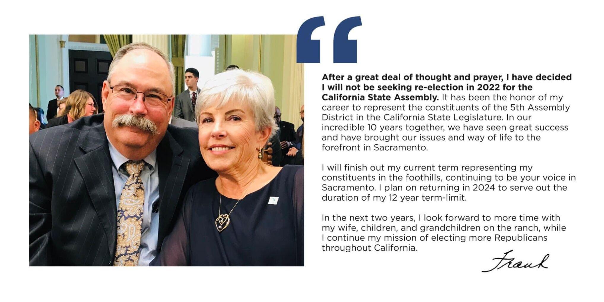 Republican State Assemblyman, Frank Bigelow Forgoes 2022 Re